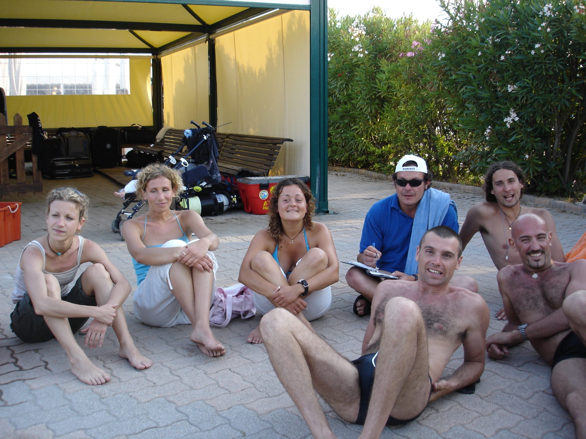 Wir waren jung und unbeschwert, begeistert von unserer Arbeit, aber auch voller Lust, uns bei der Arbeit und außerhalb zu amüsieren. Wir waren eine richtig tolle Gruppe: Alessandro „il Corcella“ und Claudia, Lisa – die später Fabiones Frau wurde –, Sandro, bevor er in die Schweiz auswanderte, Manuel, der an den Wochenenden und immer bei Partys auftauchte, Mariolone, der überall seine Sachen verteilte, Ale „Tigna“, mein unzertrennlicher Freund, der seine Ferien auf Elba verbrachte, nur um uns im Diving zu helfen. Und dann war da noch Giacomo Baldi, „il compare“ von Fabio, zu dem er ein Verhältnis zwischen Zuneigung und „ich könnte ihn erwürgen“ hatte – so sehr, dass man sie Shrek und Esel nannte (aus dem Disney-Film Shrek). Und noch heute, fast zwanzig Jahre später, ist Giacomo, inzwischen Eigentümer des Enfola Diving, bei allen unter dem Spitznamen „Esel“ bekannt.