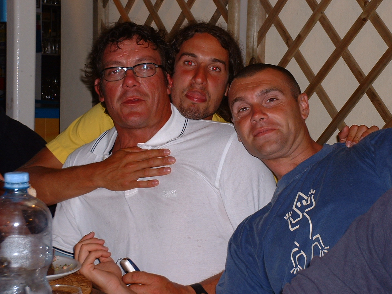 Wir waren jung und unbeschwert, begeistert von unserer Arbeit, aber auch voller Lust, uns bei der Arbeit und außerhalb zu amüsieren. Wir waren eine richtig tolle Gruppe: Alessandro „il Corcella“ und Claudia, Lisa – die später Fabiones Frau wurde –, Sandro, bevor er in die Schweiz auswanderte, Manuel, der an den Wochenenden und immer bei Partys auftauchte, Mariolone, der überall seine Sachen verteilte, Ale „Tigna“, mein unzertrennlicher Freund, der seine Ferien auf Elba verbrachte, nur um uns im Diving zu helfen. Und dann war da noch Giacomo Baldi, „il compare“ von Fabio, zu dem er ein Verhältnis zwischen Zuneigung und „ich könnte ihn erwürgen“ hatte – so sehr, dass man sie Shrek und Esel nannte (aus dem Disney-Film Shrek). Und noch heute, fast zwanzig Jahre später, ist Giacomo, inzwischen Eigentümer des Enfola Diving, bei allen unter dem Spitznamen „Esel“ bekannt.