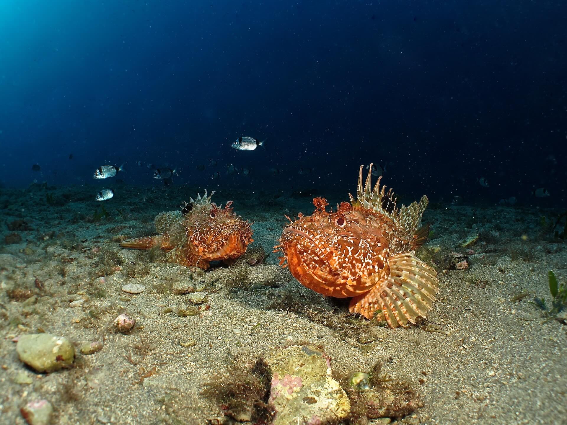 Der Tauchgang beginnt mit einem eindrucksvollen „Sprung ins Blau“, der uns auf 30 Meter Tiefe führt. Anschließend gliedert sich die Route in zwei Abschnitte: Der erste verläuft entlang der tiefen Wand, der zweite führt nach dem Überqueren eines Posidonia-Plateaus zurück in Richtung Kap Penisola. Hier kann man in geringer Tiefe beim Rückweg zum Boot Stickstoff abbauen und dabei die reiche benthische Fauna genießen – darunter Nacktschnecken, Oktopusse, Muränen und zahlreiche kleine Zackenbarsche.