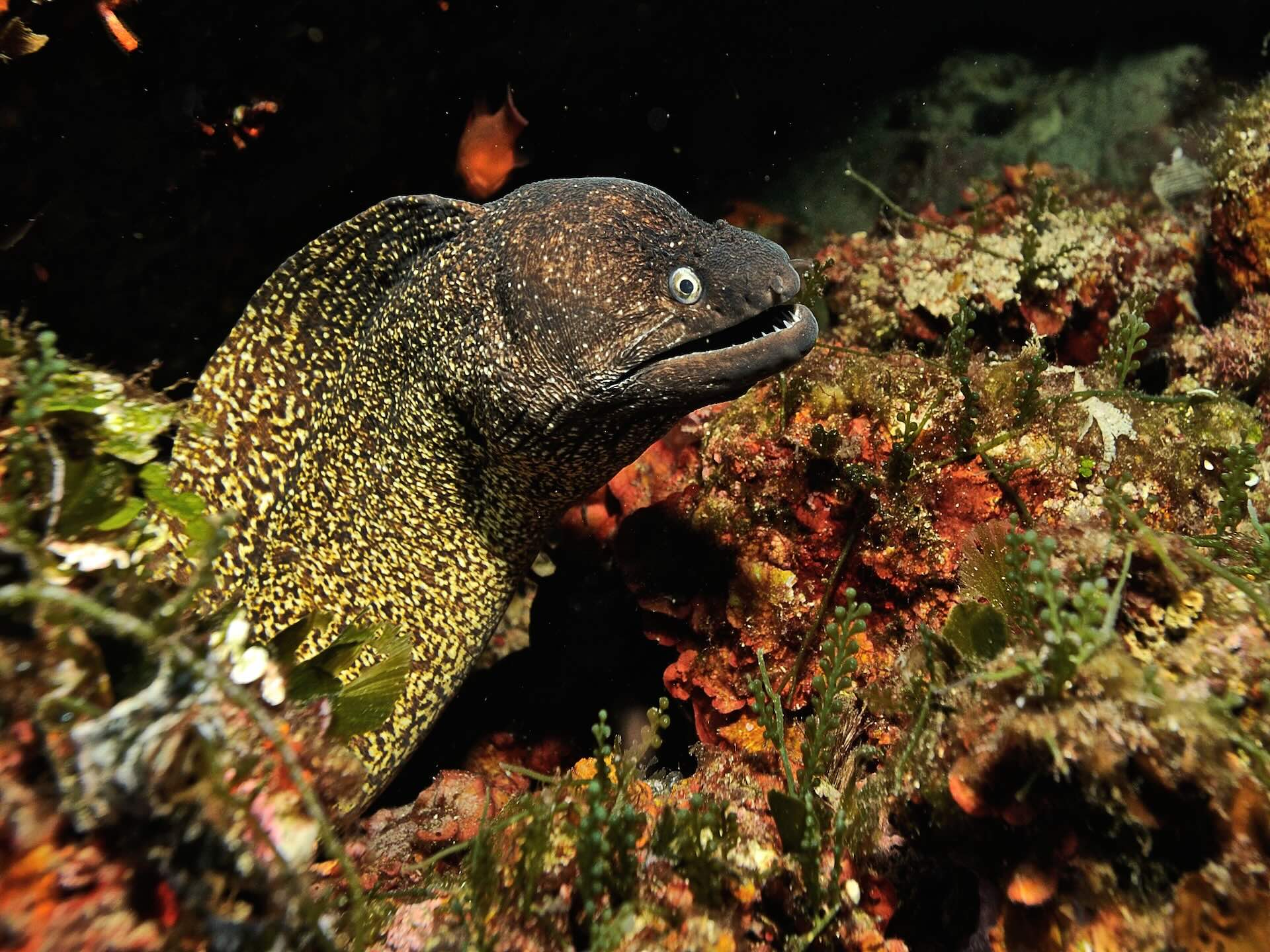 Wer sich weiter ins offene Meer wagt, erreicht eine Wand, die von 20 Metern fast senkrecht bis auf 40 Meter abfällt. Hier lohnt es sich, stets ins Blau zu blicken, um vorbeiziehende pelagische Fische zu entdecken.