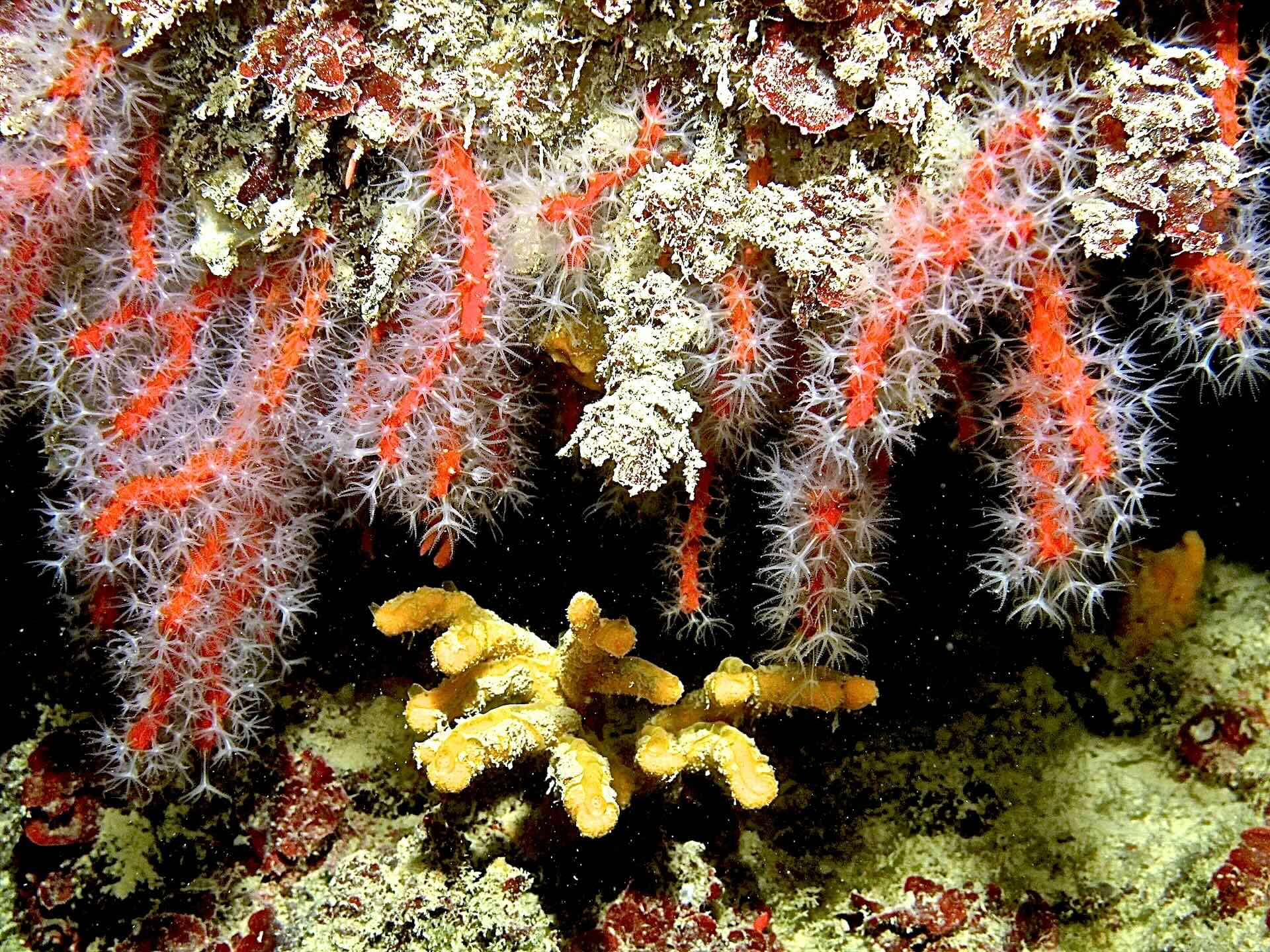 Dieser Spot ist außerordentlich artenreich, einschließlich einer großen Präsenz pelagischer Fische wie Barrakudas und Bernsteinmakrelen. Das eigentliche Highlight sind jedoch die Canyons, die mit Ästen des Roten Korallen bewachsen sind, die mehrere Zentimeter Länge erreichen.