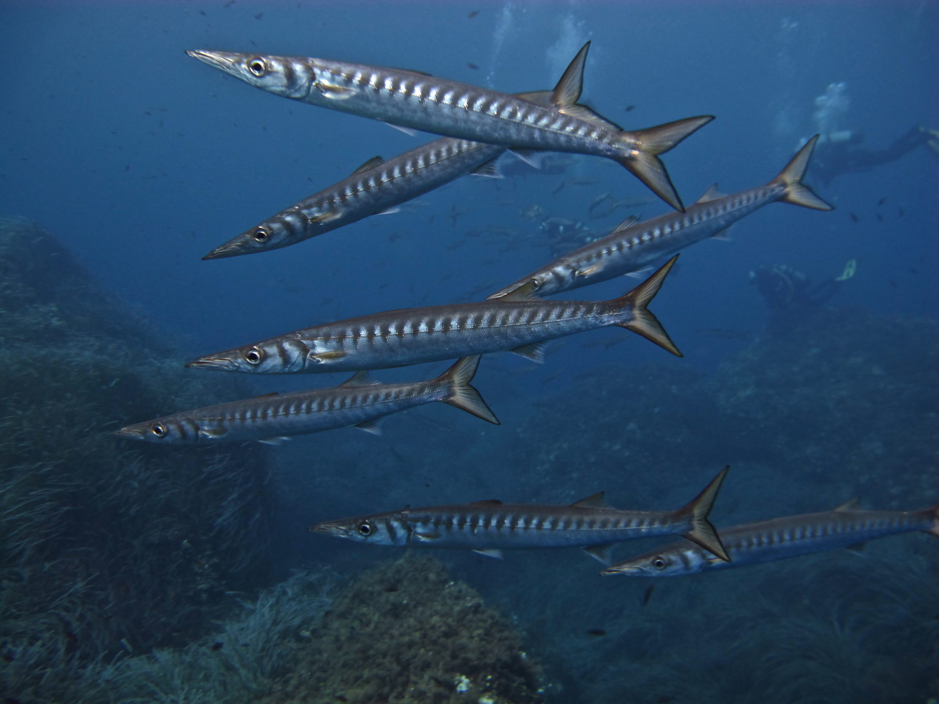 Siamo sempre nella zona di Capo Enfola quindi scrutiamo il blu per avvistare il passaggio di qualche Tonno anche di discrete dimensioni o un branco di grossi Barracuda ormai stanziali in questo punto d’immersione.