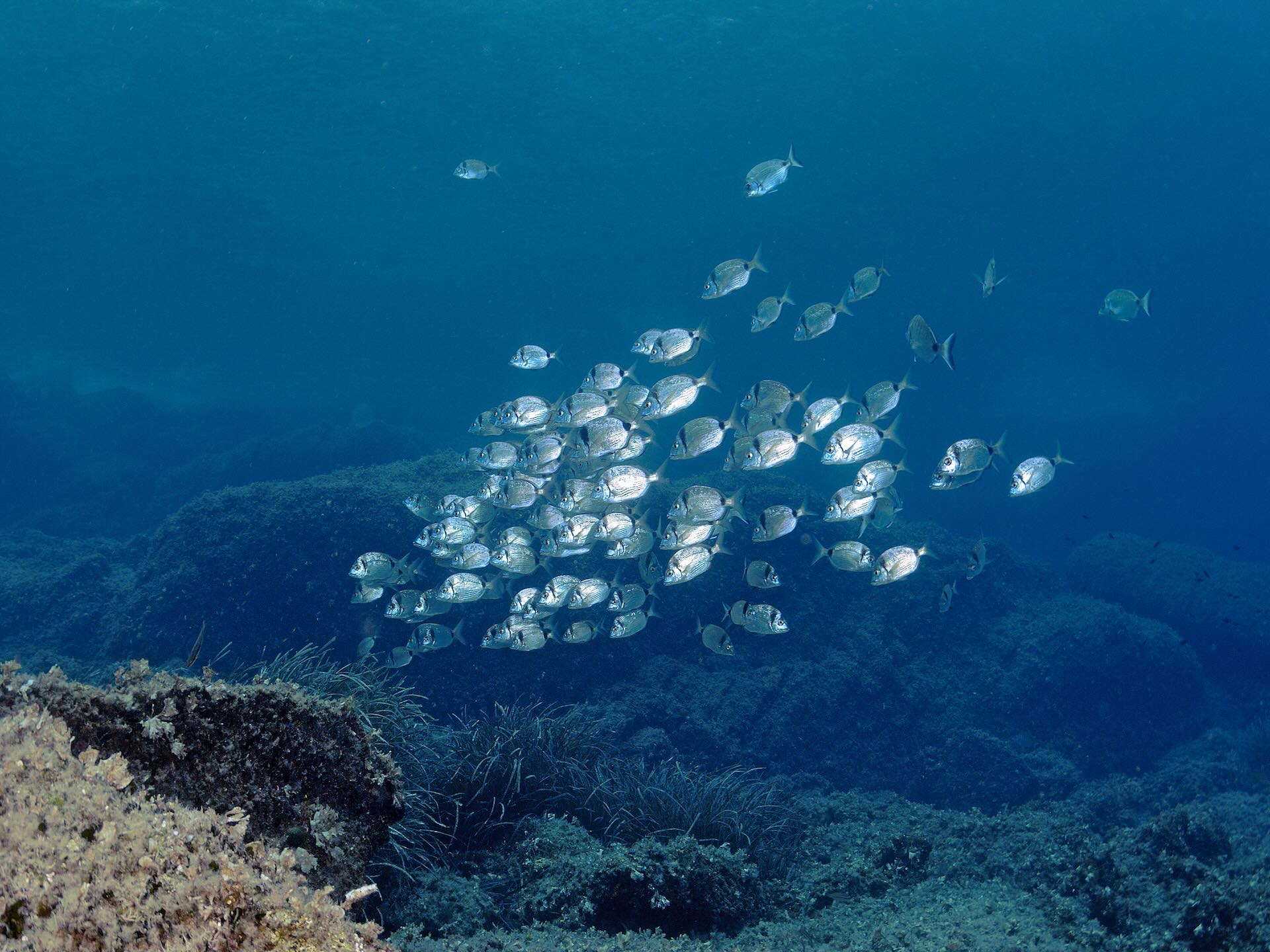 La prima punta a Ovest del porto di Marciana Marina è Punta del Nasuto, un promontorio a picco sul mare che prosegue sott’acqua con una dorsale che crea diverse terrazze, permettendoci di effettuare l’immersione con diversi profili.
