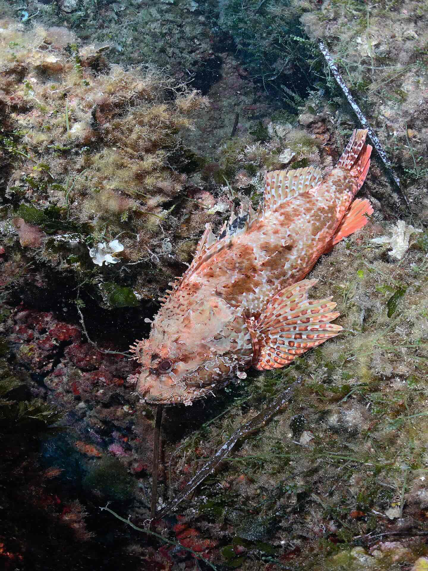 La parete è ricoperta da Gorgonie Gialle (Eunicella Cavolini) e frammentata da numerosissime spaccature ove si nascondono grosse Cernie, Gronghi e Murene, mentre oltre i 30 mt è facile scorgere le antenne delle Aragoste fare capolino dalle loro tane.