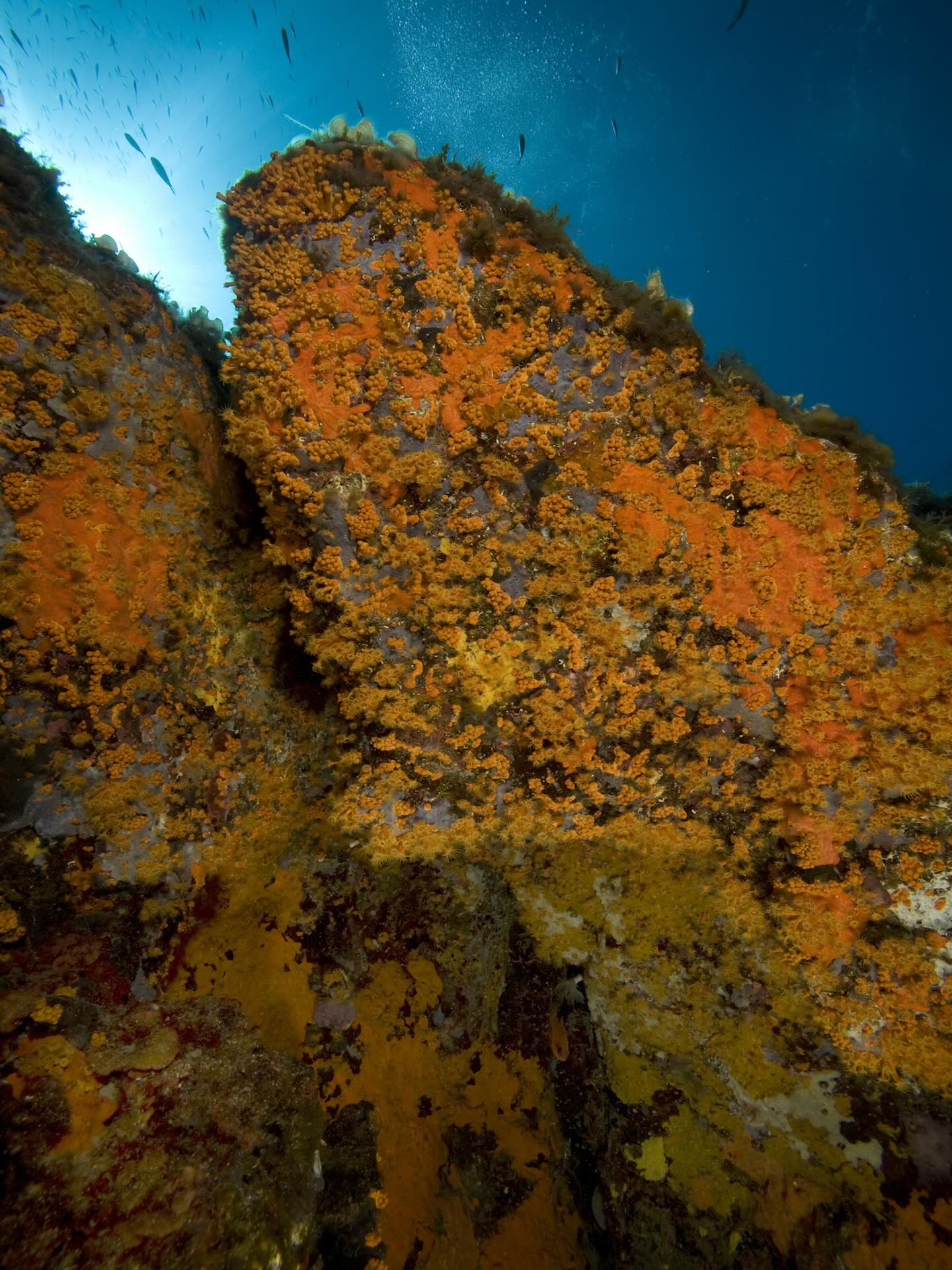 Il cappello della secca si trova a 8 metri di profondità dove ancoreremo la barca e inizieremo a scendere sul versante est, il più ripido e suggestivo perché totalmente ricoperto da Margherite di Mare (Parazoanthus).